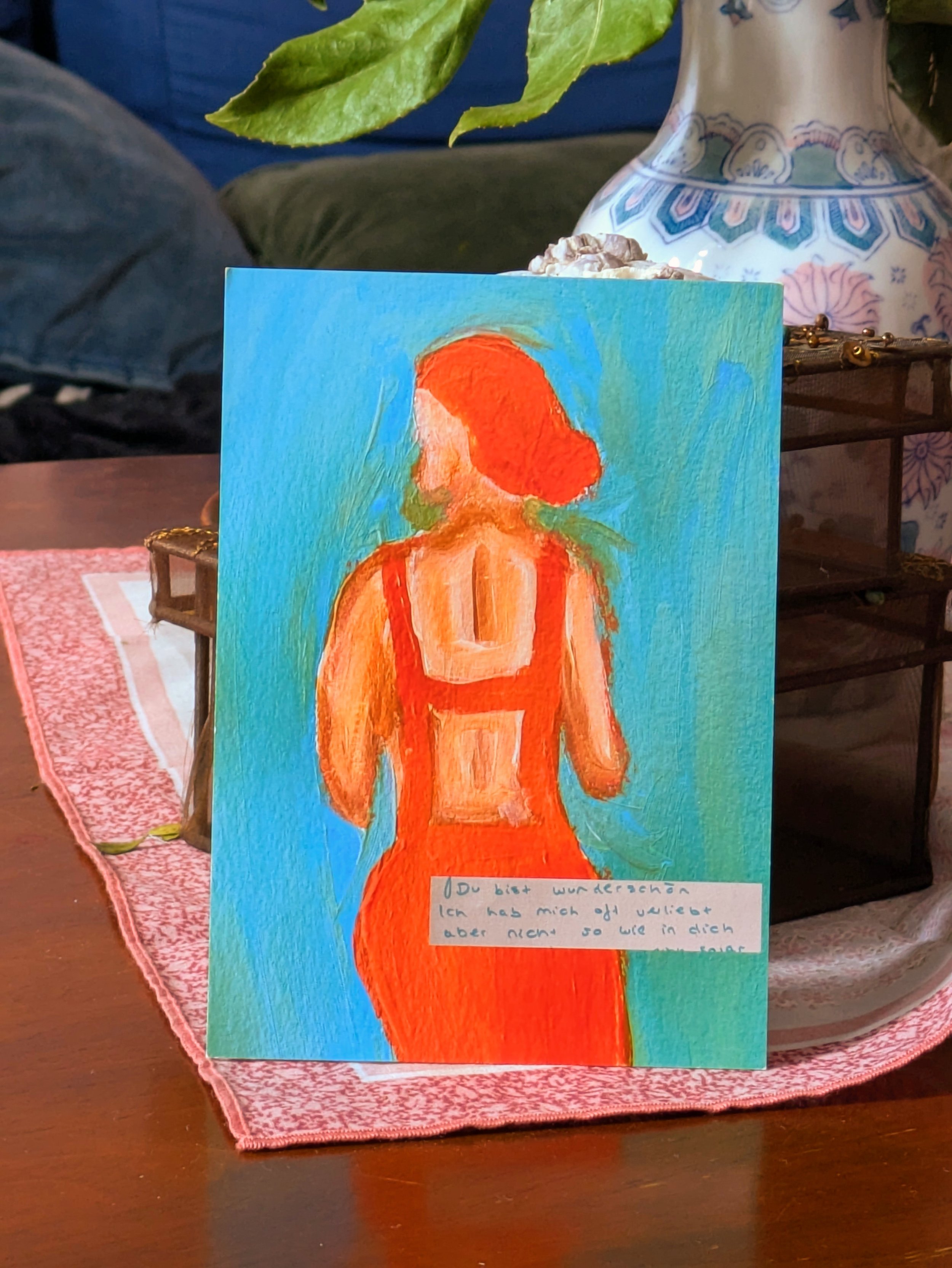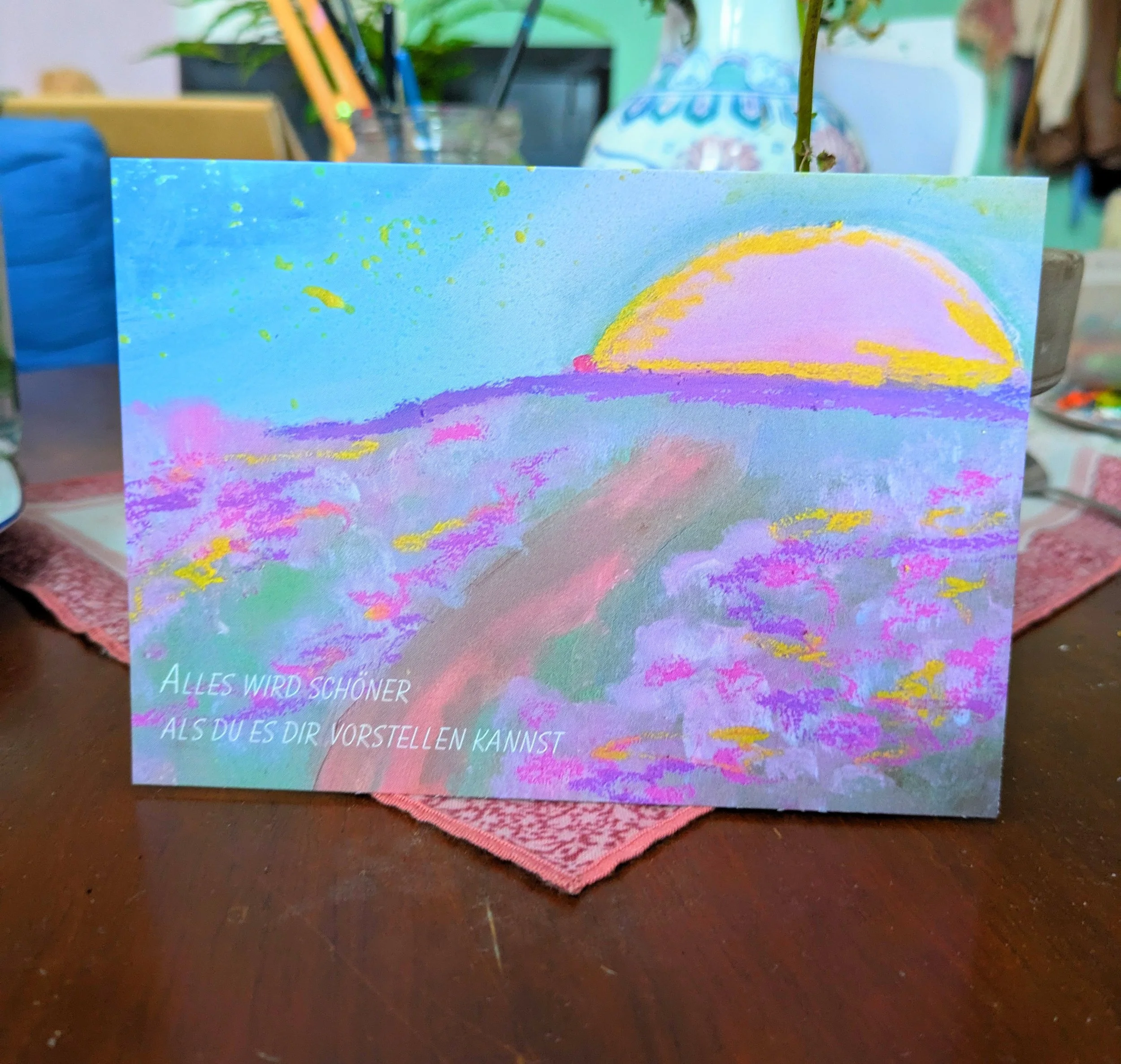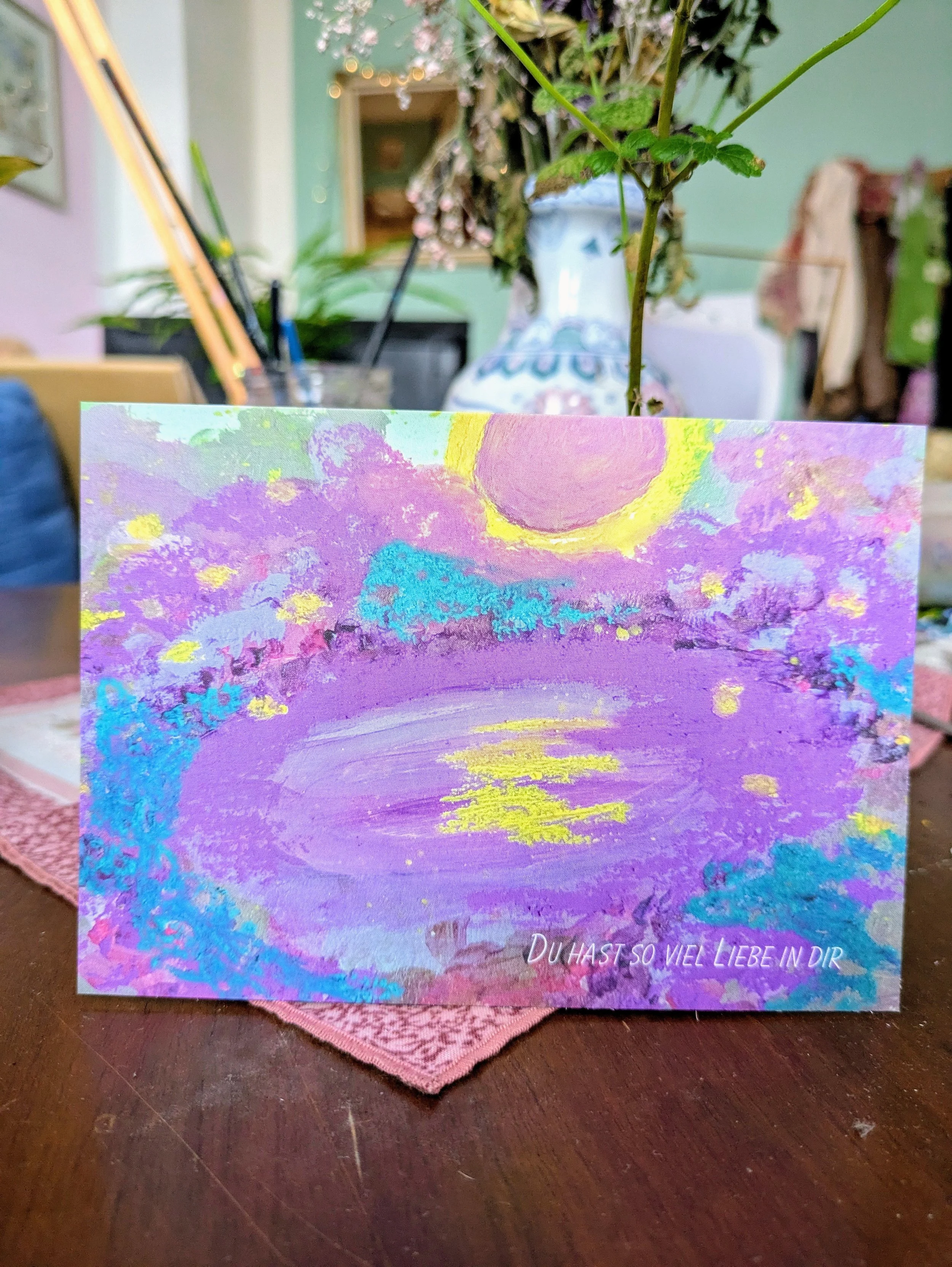 Art Shop Kategorien: Alle Artprints A3 Orginale A5 Orginale auf Leinwand Postkarten Alle | Artprints A3 | Orginale A5 | Orginale auf Leinwand | Postkarten | Why Didn’t You Protect Our Love – Limited Art A3 Print 40,00 € The Polar Express: Geborgenheit - A5 Original 28,00 € The Magic of being a Woman - A5 Original 35,00 € Always Growing, Always Glowing - A5 Original 28,00 € Orginalgemälde "I love being a Woman" (40x40cm) 320,00 € Orginalgemälde "Wanna come over?" (45 x 70 cm) 400,00 € Orginalgemälde "Wann hört es auf?" (45 x 70cm) 300,00 € Mixed Media Collage "Free Europe" (40x60cm) 250,00 € Orginalgemälde "Why didn't you protect our love?" (60x80cm) 520,00 € Orginalgemälde "Sommernächte" (40x60cm) 350,00 € Weihnachtspostkarte A6 "Warme Herzen" 3,00 € Weihnachtspostkarte "Geborgenheit" 3,00 € Postkarte A6 "The Magic of Being a Woman" 3,00 € Weihnachtspostkarte A6 "Warme Brüder" 3,00 € Postkarte A6 "Alles wird schöner als du es dir vorstellen kannst" 3,00 € Postkarte A6 "Du hast so viel Liebe in dir" 3,00 € Postkarte A6 "Ich vertraue meinem Licht" 3,00 € Postkarte A6 “Always Growing, Always Glowing” 3,00 € Orginalgemälde "Sink with a View" (40 x 60cm) 320,00 € Postkarte "She knows her power" 4,00 € Orginalgemälde "Female Rage" (40 x 40) 240,00 € Postkarte A6 "Das Leben ist schön" 3,00 € Postkarte "I love being a woman" 4,00 € Orginalgemälde "She knows her power" 30 x 30 cm 180,00 € Postkarte A6 "Frieden und Freiheit" 3,00 € Postkarte A6 "Weihnachtskiosk" 3,00 € Postkarte A6 "Zuhause im Chaos" 3,00 € Originalgemälde "Scheiss Rock" 30x30 cm 180,00 € Orginalgemälde "First Love" (30 x 30 cm) 250,00 € Postkarte "First Love" 4,00 € Postkarte A6 "Sexy Lady" 3,00 €